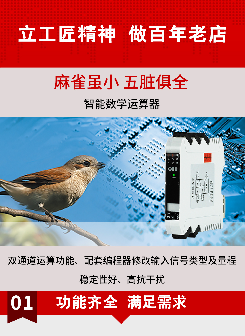 虹潤公司是專業生產運算器的國家專精特新“小巨人”企業,生產的智能數學運算器,具有全切換信號輸入,加減乘除數學運算,穩定性好,高抗干擾,RS485/RS232通訊等特點。產品獲得巡回檢測顯示方法及裝置、儀表殼體等2項國家發明專利,主持起草工業過程控制系統用模擬輸入兩位或多位輸出儀表、物聯網智能溫度儀表通用技術條件等2項國家標準,,以及通信系統多通道數據采集控制終端規范軍用標準,參與國際5G標準制定,取得雙回路數字顯示控制儀表等3項相關軟件著作權。產品廣泛應用于電力、石化、冶金、化工、造紙、食品、輕工、制藥、熱處理、水處理、機械配套等各種工業現場。