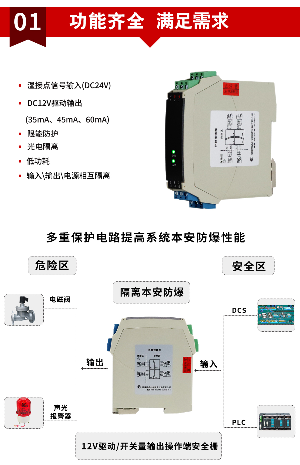 虹潤(rùn)公司是專業(yè)生產(chǎn)隔離器的國(guó)家專精特新“小巨人”企業(yè)。生產(chǎn)的隔離式操作端安全柵涵蓋信號(hào)電壓輸入、電流輸入、開(kāi)關(guān)量輸入等多種產(chǎn)品類(lèi)型。產(chǎn)品獲得具備減震抗干擾能力的溫度變送器、信號(hào)隔離器、一種二端子模塊、無(wú)源信號(hào)隔離器等4項(xiàng)國(guó)家發(fā)明專利,主持起草物聯(lián)網(wǎng)智能溫度儀表、現(xiàn)場(chǎng)設(shè)備工具(FDT)接口規(guī)范、工業(yè)過(guò)程測(cè)量和控制系統(tǒng)用溫度變送器等3項(xiàng)國(guó)家標(biāo)準(zhǔn),以及通信系統(tǒng)多通道數(shù)據(jù)采集控制終端規(guī)范軍用標(biāo)準(zhǔn)。參與國(guó)際5G標(biāo)準(zhǔn)制定,取得智能隔離式安全柵等4項(xiàng)相關(guān)軟件著作權(quán)。產(chǎn)品廣泛應(yīng)用于石油、電力、化工,冶金、智能制造、污水處理等諸多行業(yè)。