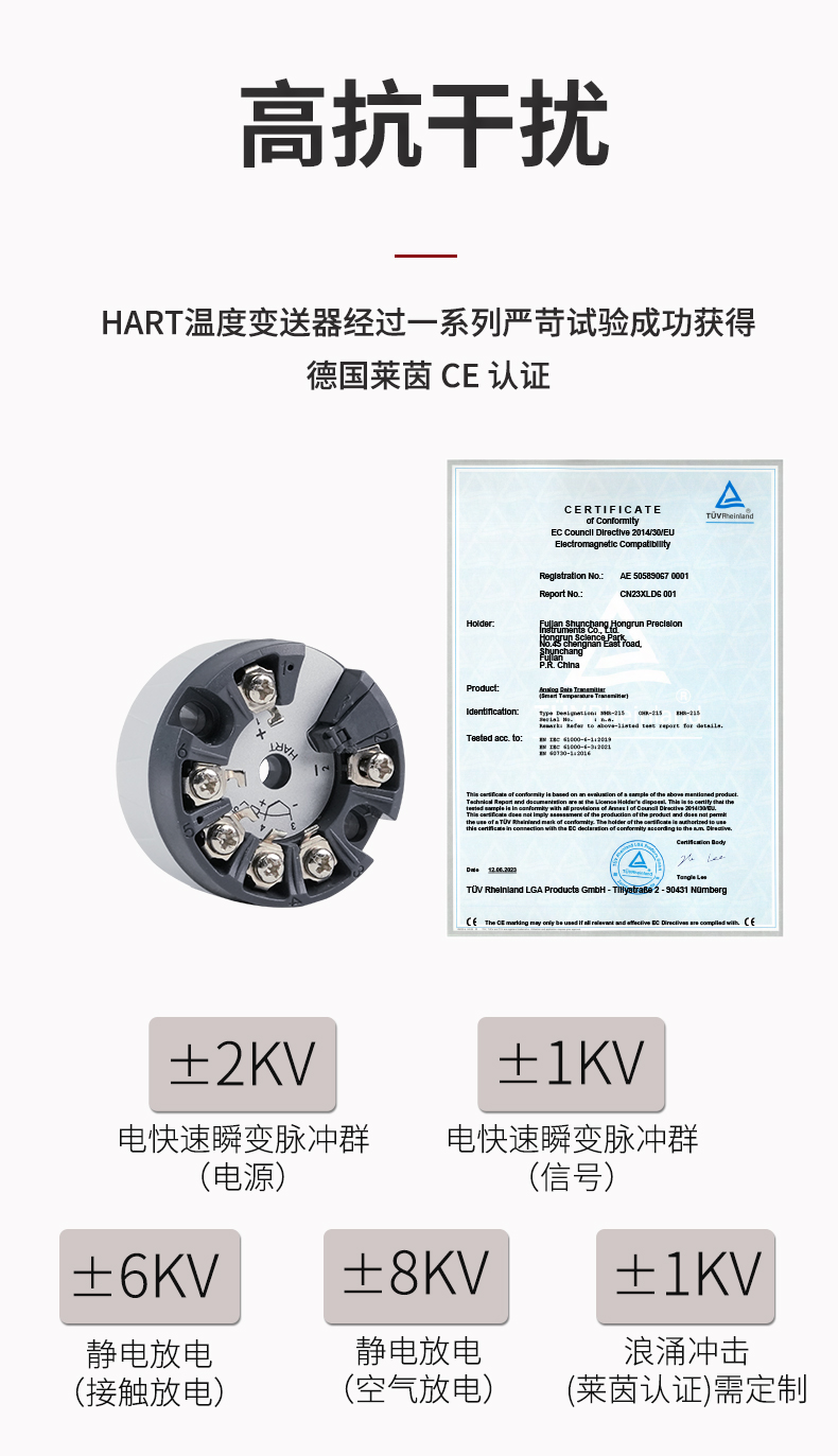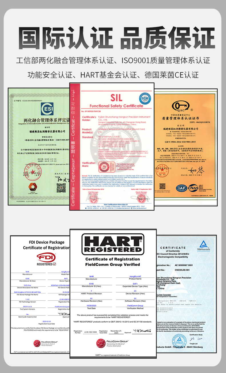 虹潤公司是專業(yè)生產(chǎn)溫度變送器的國家專精特新“小巨人”企業(yè)。生產(chǎn)的智能溫度變送器,具有適配各類溫度傳感器,精度高,通過編程線修改輸入信號類型及量程,高抗干擾,HART或485通訊等特點。該產(chǎn)品不僅通過HART基金會認(rèn)證、德國萊茵 CE 認(rèn)證與 SIL 功能安全認(rèn)證,還獲得具備減震抗干擾能力的溫度變送器、信號隔離器、一種二端子模塊、無源信號隔離器等4項國家發(fā)明專利,主持起草物聯(lián)網(wǎng)智能溫度儀表、現(xiàn)場設(shè)備工具(FDT)接口規(guī)范、工業(yè)過程測量和控制系統(tǒng)用溫度變送器等3項國家標(biāo)準(zhǔn),以及通信系統(tǒng)多通道數(shù)據(jù)采集控制終端規(guī)范軍用標(biāo)準(zhǔn),參與國際5G標(biāo)準(zhǔn)制定,取得HART溫度變送器、智能溫度變送器等3項相關(guān)軟件著作權(quán)。產(chǎn)品廣泛應(yīng)用于石油、化工、電力、冶金、制藥、食品、水處理等各種工業(yè)領(lǐng)域。。